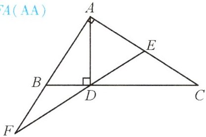 9.如图,在△ABC中,∠BAC=90°,AD⊥BC于点D,E是AC的中点,ED延长线交AB延长线于点F.求证:(1)DF²=AF·BF;$(2)\frac{BF}{FD}=\frac{AB}{AC}.$