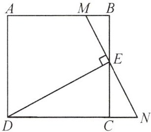 8.如图,E为正方形ABCD中BC边上的中点,AB=1,MN⊥DE交AB于点M,交DC的延长线于点N.(1)求证:EC²=DC·CN.(2)求CN和NE的长.