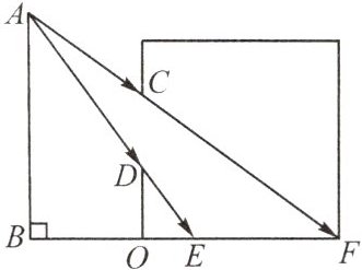6.如图,学校平房的窗外有一路灯AB,路灯光能通过窗户CD照到平房内EF处.经过测量得,窗户距地面高OD=1.5m,窗户高度DC=0.8m,OE=1m,OF=3m.求路灯AB的高.