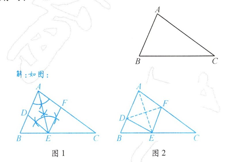 如图1:作$\angle BAC$的平分线交$BC$于点$E$,再作$\angle AEF=\angle AED=\angle BAE$,