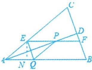 则$S_{菱形AEPQ}=EP\cdot EN=\frac{1}{2}EF\cdot EN=\frac{1}{2}S_{四边形EFBQ}$