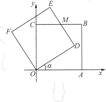 如图,在平面直角坐标系中,四边形OABC是正方形,点A的坐标为(m,0).将正方形OABC绕点O逆时针旋转α角,得到正方形ODEF,DE与边BC交于点M,且点M与点B,C不重合.(1)请判断线段CD与OM的位置关系;(2)试用含m和α的代数式表示线段CM的长,并求出α的取值范围.
