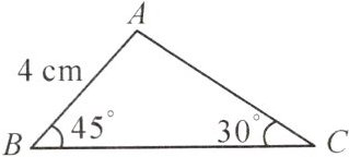 5. 如图,在 Rt△ABD 中,∠D = 90°,∠ABD = 30°,∠ACD = 45°,BC = 4 cm. 求△ABC 其余各边的长、各角的度数和△ABC 的面积.