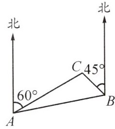 4. 如图,C岛在A岛的北偏东60°方向,在B岛的北偏西45°方向,则从C岛看A,B两岛的视角∠ACB=
