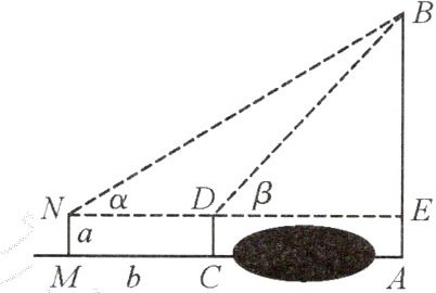 ,测得此时点B的仰角∠BNE=α;(2)在测量点C(点A,C,M在同一直线上)处安置测倾器,测得此时点B的仰角∠BDE=β;