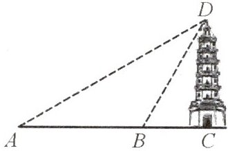 $AB = a × \tan(\theta) + h'$,其中 $\theta$ 为视线与地面夹角,$h'$ 为眼睛高度。