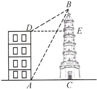 ∴x=45(m),这时AC=$\frac{x}{\sqrt{3}}$=$\frac{45}{\sqrt{3}}$=15$\sqrt{3}$(m).答:塔高BC为45米,大楼与塔之间的距离AC约15$\sqrt{3}$m.
