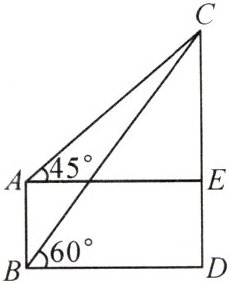 1. 如图,从B处测得建筑物上旗杆EC顶点C的仰角是60°,再从B的正上方40米高层上A处,测得C的仰角是45°,那么旗杆顶点C离地面的高度CD是