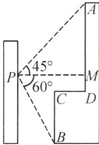 解:$AB=5\sqrt{3} + 2≈10.66$