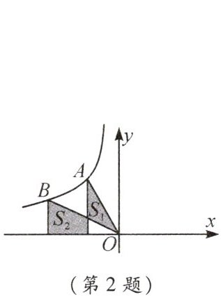 2. 如图,A,B为反比例函数$y = \frac{k}{x}(x < 0)$图象上的两点,则$S_1$与$S_2$的大小关系为(
