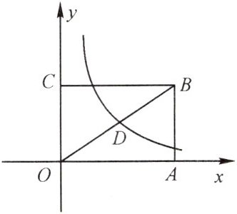 5. 如图,已知矩形OABC的面积为$\frac{100}{3}$,它的对角线OB与双曲线$y = \frac{k}{x}$相交于点D,且OB:OD = 5:3,则k的值是多少?