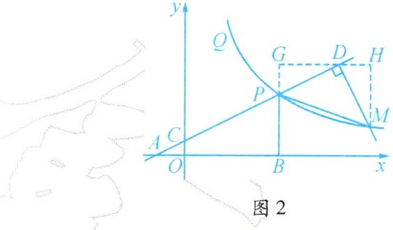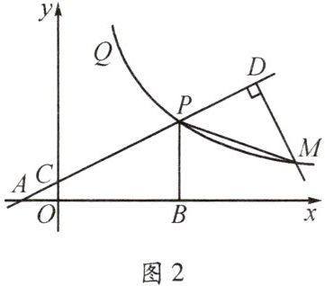 (3)如图2,$M$是函数$y=\frac{m}{x}(x>0)$图象上点$P$右侧的一个动点,过点$M$作$MD\perp$直线$AP$于点$D$,若$\angle PMD=45^{\circ}$,求点$M$的坐标.