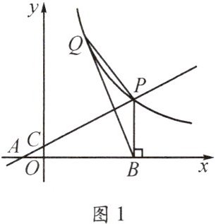 (2)$Q$是函数$y=\frac{m}{x}(x>0)$图象上点$P$左侧一点,且$\triangle BPQ$的面积为6,求点$Q$的坐标;