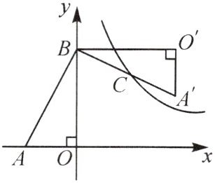 3. 如图,在$Rt\triangle AOB$中,两直角边$OA$,$OB$分别在$x$轴的负半轴和$y$轴的正半轴上,将$\triangle AOB$绕点$B$按逆时针旋转$90^{\circ}$后得到$\triangle A'O'B$.若反比例函数$y=\frac{k}{x}$的图象恰好经过斜边$A'B$的中点$C$,$S_{\triangle ABO}=4$,$\tan\angle BAO=2$,则$k$的值为多少?