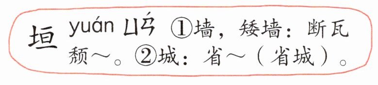 1.形成解释 下图是“垣”字在字典中的解释,据此我们可以推测“城垣”的意思是____。(1分)