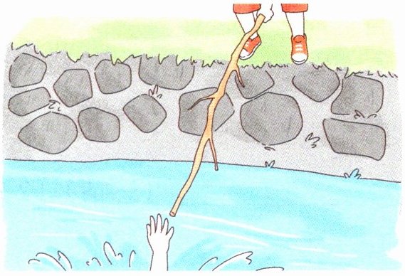 近距离救援时,可以将树枝、绳子、衣物等,伸给溺水者,将其拉上岸。