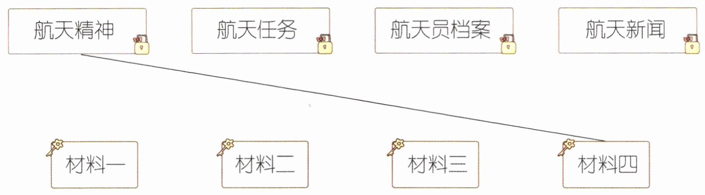 1.整体感知 同学们将黑板报分为“航天新闻”“航天任务”“航天员档案”“航天精神”等板块,在制作这些板块时,同学们应该分别阅读哪则材料? 请你连一连。(3分)