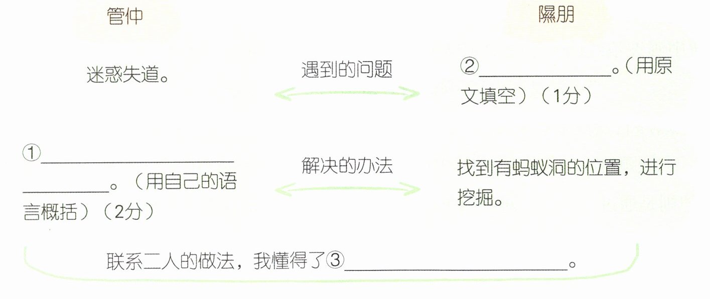 3.评价鉴赏 对比文中管仲和隰朋的做法,总结获得的道理,完成下列导图。(5分)