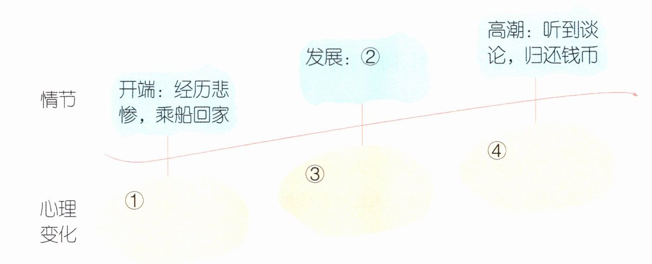 (1)整体感知 仿照示例,通过梳理情节和心理变化图,初步感受人物的形象。(4分)