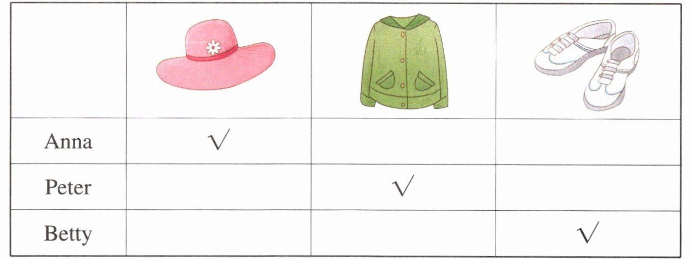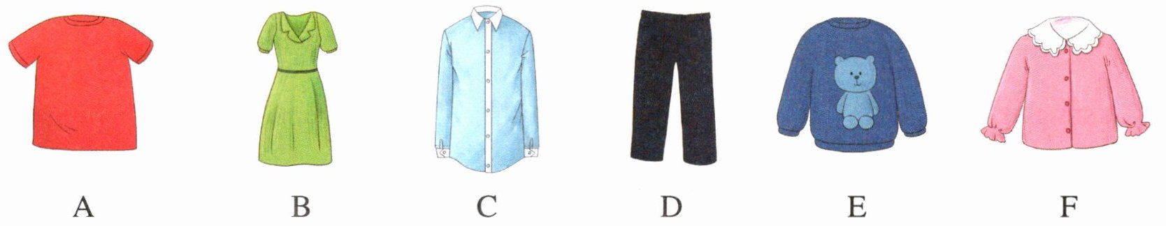 Hello, I’m Alice. It’s sunny today. I want to pack the clothes with my sister Lucy. The red T-shirt and the blue sweater are Lucy’s. The pair of black pants and the blue shirt are my father’s. The green dress is my mother’s. Whose pink coat is this? It’s mine.