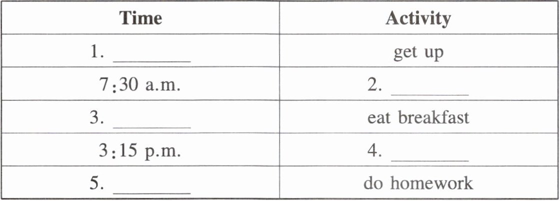二、听录音,帮Amy补全她的日程安排吧。(有两项多余)