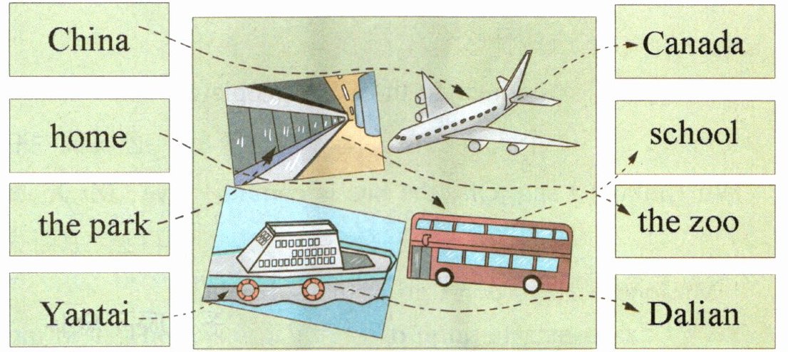 5. We get to Beijing from Shanghai ______ ______ (乘火车).