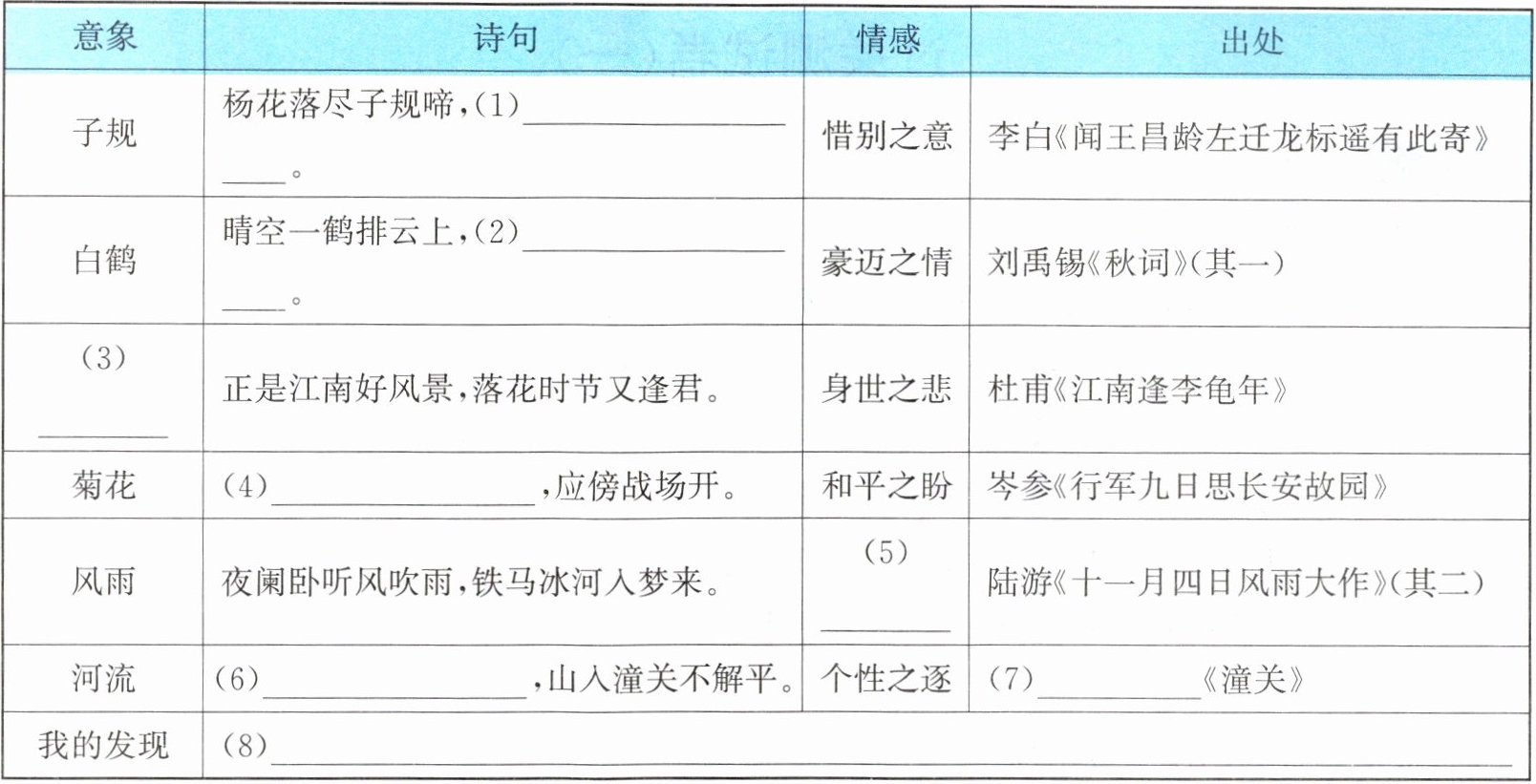 (8)古代诗人常借助具体意象来抒发自己的情感,不同的意象承载着不同的情思。