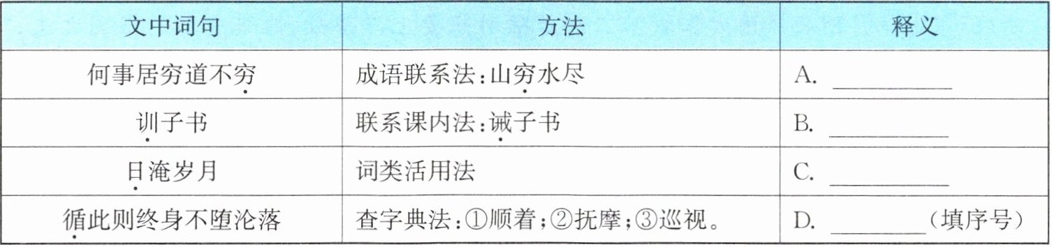 (1)参照表格中的方法,解释下列句子中的加点词。