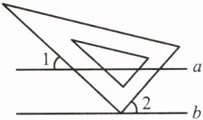 13. 如图,将三角板的直角顶点放在两条平行线a,b中的直线b上,如果∠1=40°,则∠2的度数是 (