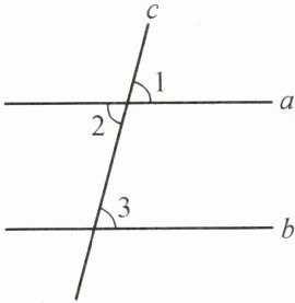 12. 如图,直线c与直线a,b相交,且a//b,则下列结论:①∠1=∠2;②∠1=∠3;③∠3=∠2中,正确的个数为 (