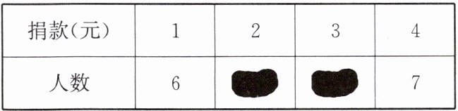 表格中捐款2元和3元的人数不小心被墨水污染已看不清楚.