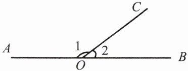8. 如图,点O在直线AB上,OC为射线,∠1比∠2的3倍少$10^{\circ }$,设∠1,∠2的度数分别为x,y,那么下列求出这两个角的度数的方程组是 (