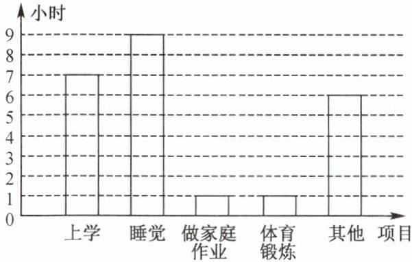 7. 小亮一天的时间安排如图所示,请根据图中的信息计算:小亮一天中,上学、做家庭作业和体育锻炼的总时间占全天时间的(