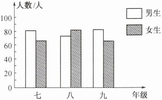 4. 如图是一个复式条形统计图,它表示某中学初中年级男、女生的人数情况.