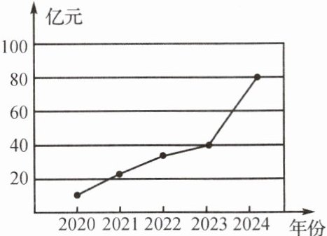 5. 如图是根据某地2020-2024年财政收入绘制的折线统计图,观察统计图可得:同上年相比该市财政收入增长速度最快的年份是