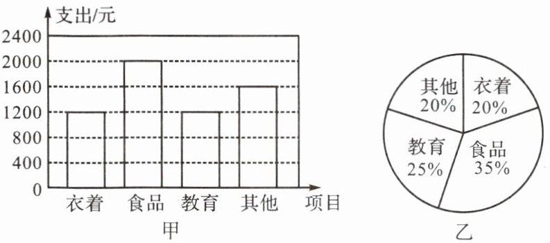8. 下面是两户居民家庭某月各项支出的统计图.根据统计图,下列对两户教育支出占这月总支出的百分比作出的判断中,正确的是(