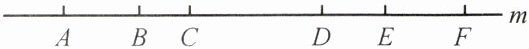 例2 如图,以直线$m$上的点$A$,$B$,$C$,$D$,$E$,$F$为端点的线段有多少条?
