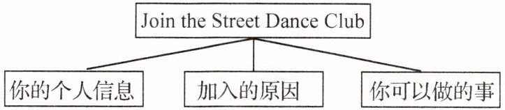 假定你是李华,在观看了巴黎奥运会霹雳舞(breaking dance)的预赛后,对街舞(street dance)产生了浓厚的兴趣,因此想加入学校街舞社。请你根据下列思维导图中的提示信息用英语写一封入社申请信。