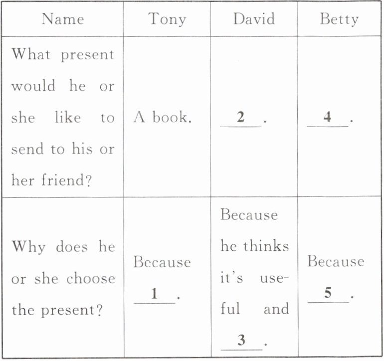 David: I want to make a present for my good friend. It is a special pencil holder(笔筒). I think it is useful(有用的) and can help her with her studies.