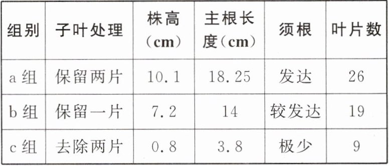 6. 下表是“探究子叶的不同处理对花生幼苗发育的影响”的实验结果:
