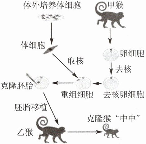 3. 2017年11月27日,世界上首只体细胞克隆猴“中中”在中国科学院神经科学研究所诞生。如图是克隆猴“中中”的培育过