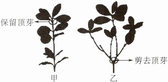 2. 如图所示,甲、乙分别为大叶黄杨植物体上保留顶芽和剪去顶芽的枝条,从枝条的发育情况分析,下列说法正确的是()