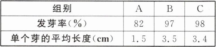 【实验结果】 4天后,统计各组漏篮内黄豆的发芽率。结果记录如下表: