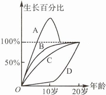 1. 图中曲线能表示人生殖器官的生长发育过程的是()