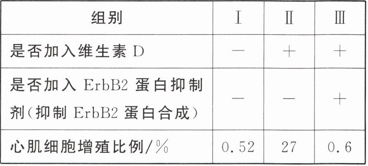 (3)进一步研究发现,在注射维生素D的心脏中,会有ErbB2蛋白出现。为研究ErbB2蛋白是否与维生素D的作用相关。研究者又进行了如下几组实验。