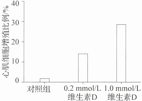 (2)某研究发现维生素D能促进心肌细胞增殖。研究者将维生素D溶解在乙烯醇溶液中,取等量不同浓度的溶液注射到斑马鱼体内得到图中的数据结果。图中对照组应