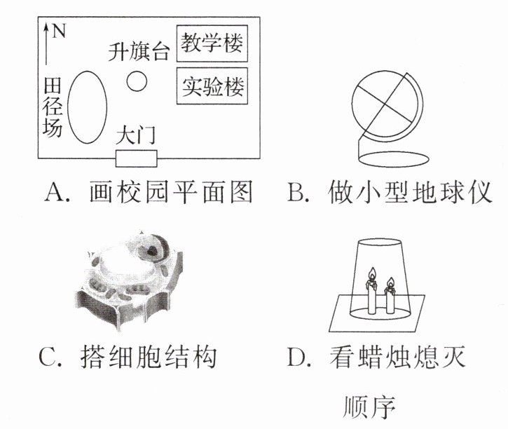 C. 搭细胞结构 D. 看蜡烛熄灭