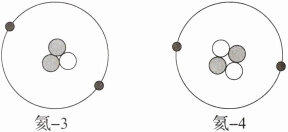 7. 嫦娥五号返回器携带月球土壤样品成功返回地球,月球土壤中含有较丰富的氦-3,而在地球上,氦元素主要以氦-4的形式存在。如图是氦-3和氦-4的原子结构示意