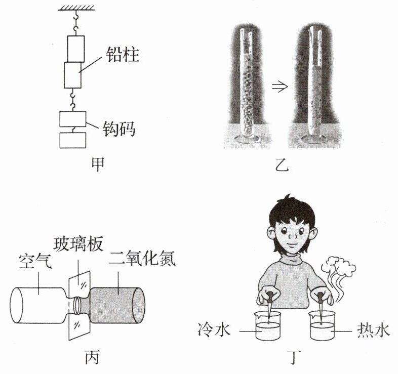 A. 甲:钩码不能把两块铅柱分开,说明分子之间存在引力