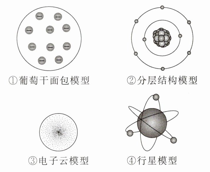 8. 原子结构模型是经过一代代科学家不断地发现和提出新的原子结构模型的过程。下列有关图①②③④所示的四种原子结构模型的叙述错误的是 ()